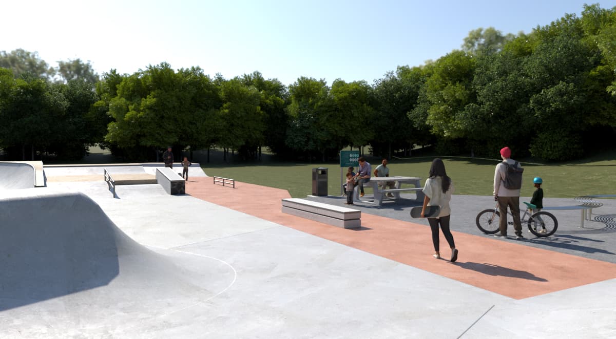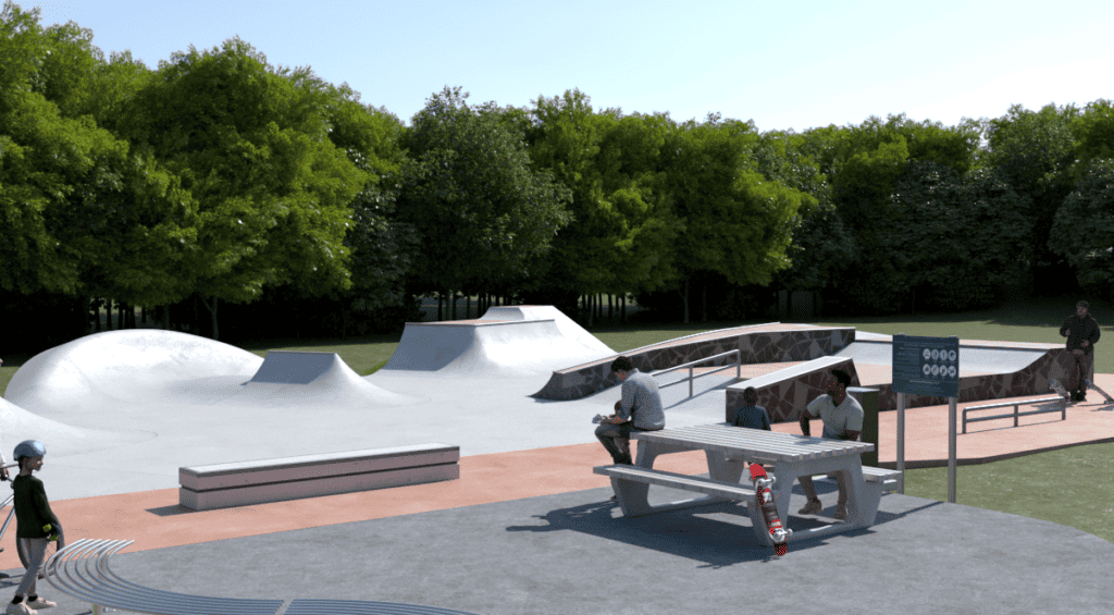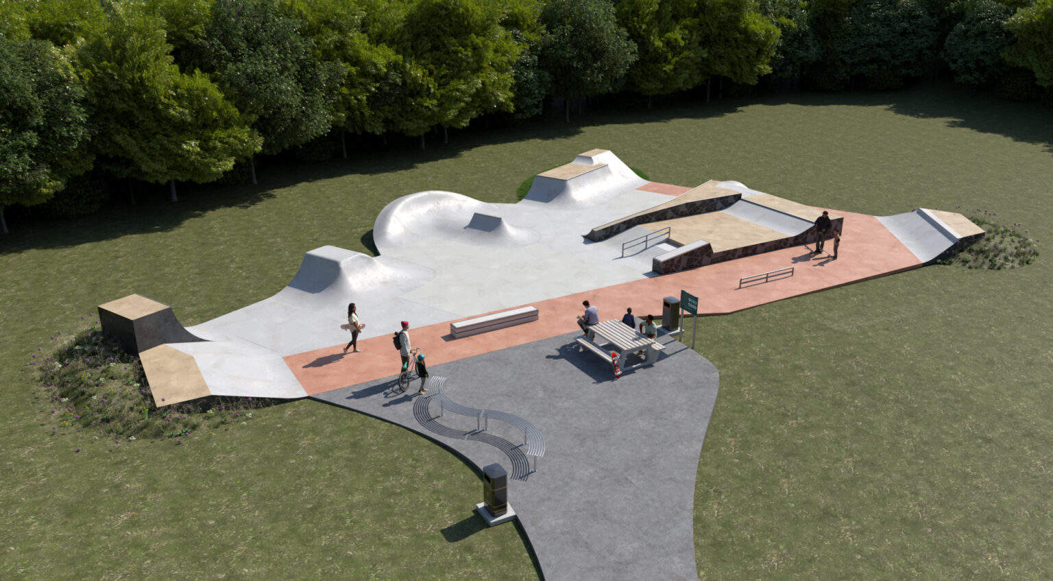 All Wheels Facility: The existing skate park has been transformed into a modern all wheels facility, designed to accommodate scooters, BMX bikes, and skateboards. The project also included tree and wildflower planting to enhance the site's visual appeal and support local biodiversity.
